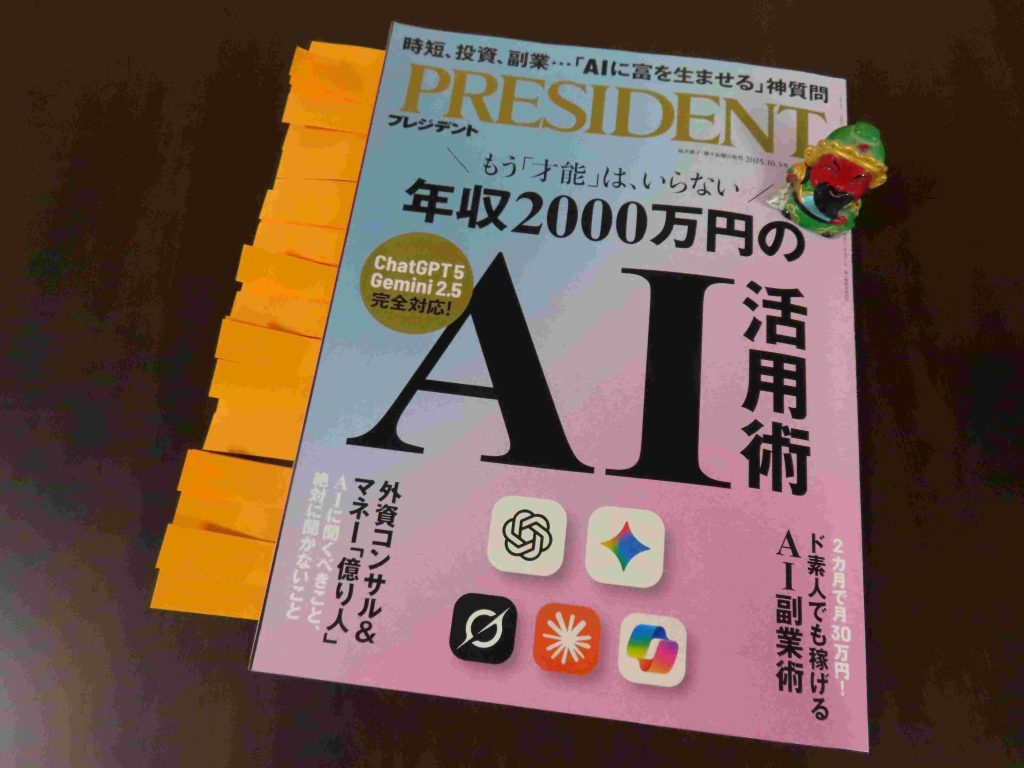 閑話休題、「プレジデント2025年10月3日号」に掲載されている「年収2000万円のAI活用術――もう『才能』は、いらない」から、多くのヒントを得ることができました。