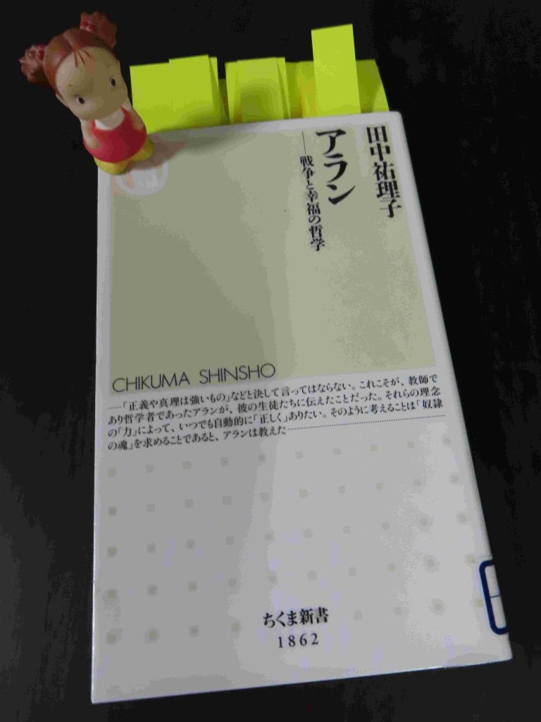 閑話休題、アラン(本名エミール・シャルティエ。1868~1951年)の『幸福論』は愛読書だが、アラン自身について知っていることは、ほんの僅かです。評伝『アラン――戦争と幸福の哲学』(田中祐理子著、ちくま新書)のおかげで、アランの信念やアランを巡る人物について学ぶことができました。