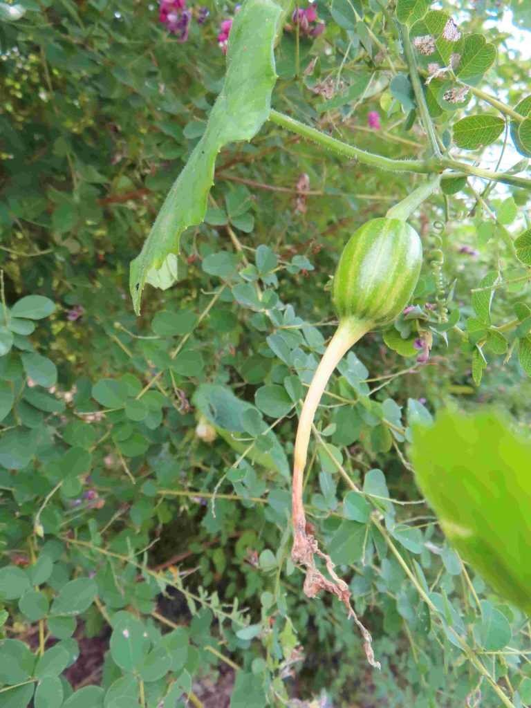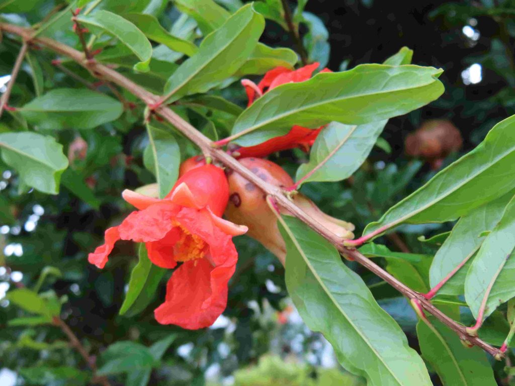 エゾビタキ(写真1)をカメラに収めました。ザクロ(写真2~4)が花と実を付けています。イチジク(写真5)、サザンカ(写真6)、ゴーヤー(写真7)、カラスウリ(写真8~10)、ヤブサンザシ(写真11)、ローゼル(学名:ヒビスカス・サブダリッファ。写真12)、ユウガオ(写真13)、スイカ(写真14)が実を付けています。