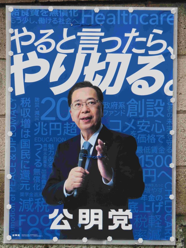 我が家の向かいの小学校では、朝から、運動会の応援をする児童たちの元気な声が響き渡っています(写真1)。残念ながら、フジバカマ(写真2~4)畑にアサギマダラは未だ出現していません。ジャコウアゲハの雌(写真5)、キタテハ(写真6、7)、ツマグロヒョウモンの雄と雌(写真8、左が雄。撮影助手<女房>がスマホで撮影)、雄(写真9)、雌(写真10)、アキアカネの雌(写真11)、アオドウガネ(写真12)、チョウセンカマキリの卵鞘(写真13。行き合った若い女性の自然撮影家・岩崎さんが見つけた)をカメラに収めました。自公連立解消の公明党のポスター、「やると言ったら、やり切る」だって。