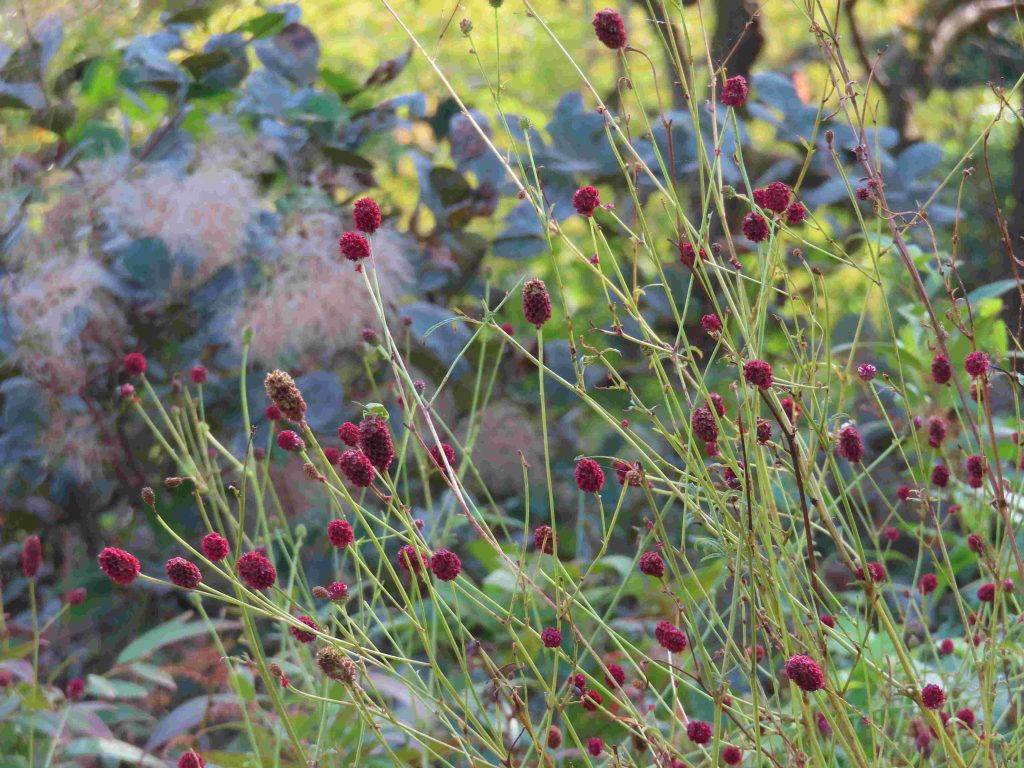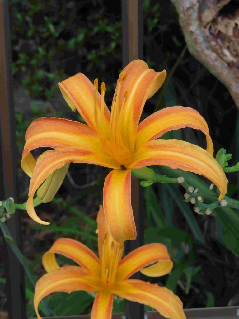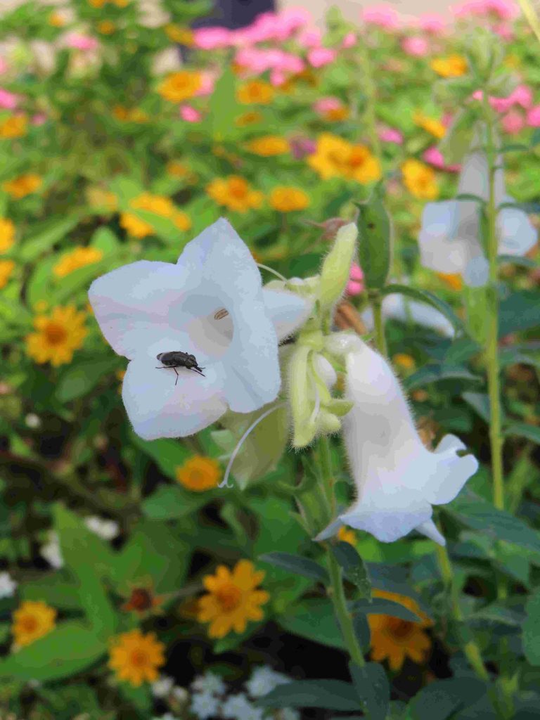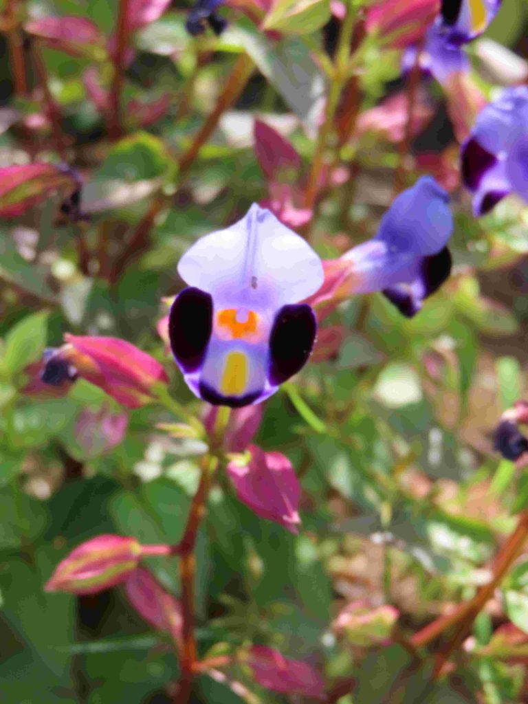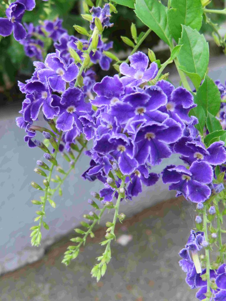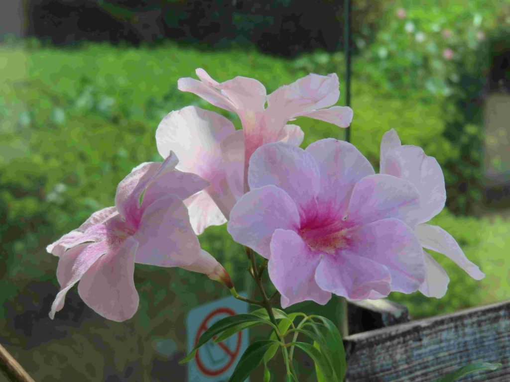 ブーゲンビレア(写真1)の苞が目を惹きます。ワレモコウ(写真2)、パンドレア・ジャスミノイデス(写真3)、デュランタ・エレクタ(写真4)、トレニア・フルニエリ(写真5、6)、ヘメロカリス(写真7)、シマサンゴアナナス(写真8)、キキョウ(写真9)、マツバボタン(写真10)が咲いています。