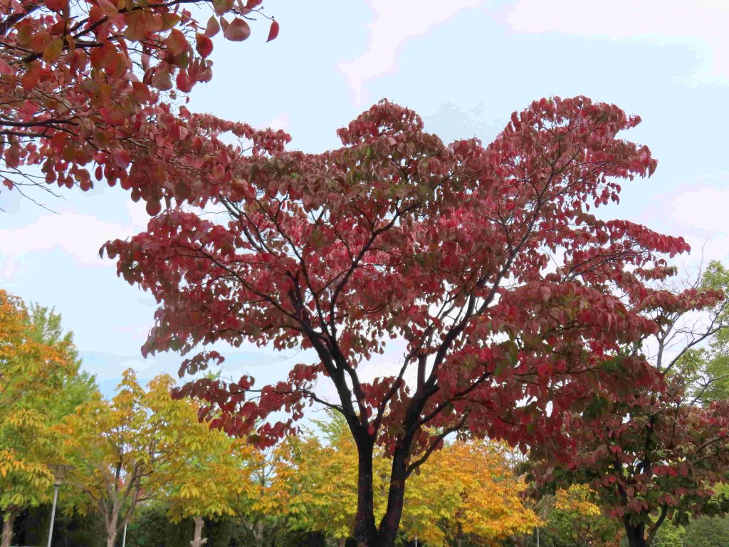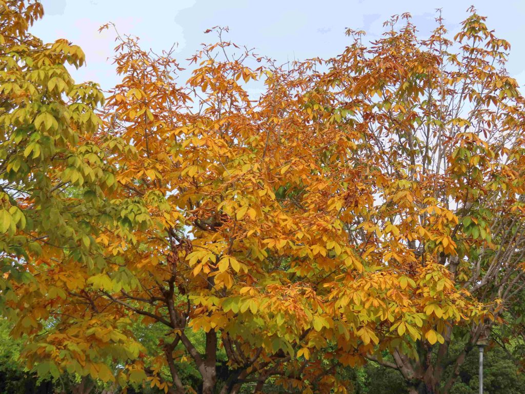 セグロセキレイ(写真1)、ハネナガイナゴあるいはコバネイナゴ(写真2)、残念な角度だが、ウラギンシジミ(写真3)をカメラに収めました。ハナミズキとユリノキ(写真4)、ユリノキ(写真5)が紅葉・黄葉しています。イチョウ(写真6)が落葉しています。
