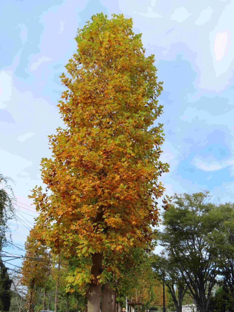 ユリノキ(写真1)が黄葉、ハナミズキ(写真2)が紅葉しています。なぜか、我が愛車の中にチュウゴクアミガサハゴロモ(写真4~6)が入り込んでいます。その腹端から蝋質分泌物が!(写真6)
