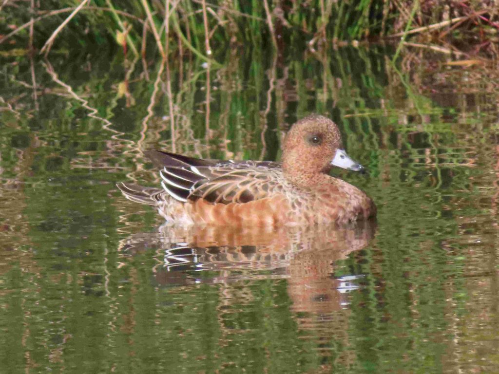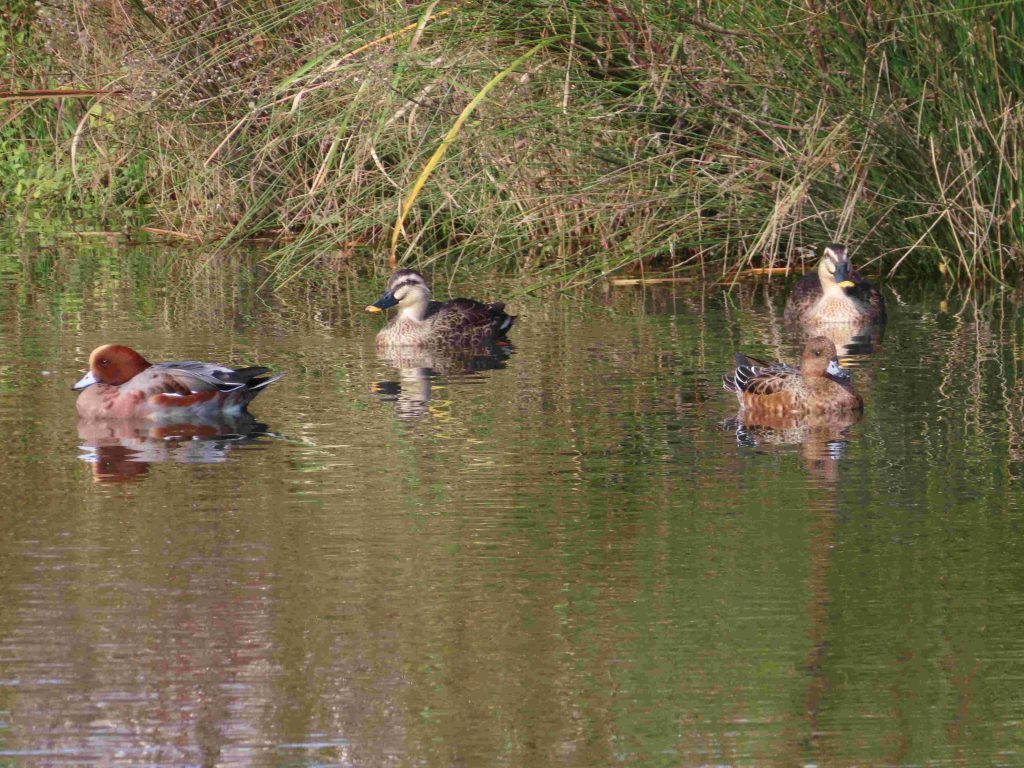 我が家の庭師(女房)から、キク(写真1、2)が咲き始めたわよ、との報告あり。ノイバラ(写真3)、トキワサンザシ(写真4)、タチバナモドキ(写真5)、カキ(写真6)が実を付けています。ヌルデ(写真7)が黄葉しています。ヒドリガモの雄と雌とカルガモ(写真8、手前左がヒドリガモの雄、右が雌)、ヒドリガモの雄と雌(写真9、左が雄。写真10、先頭が雄)、雄(写真11、12)、雌(写真13)をカメラに収めました。因みに、本日の歩数は8,523でした。