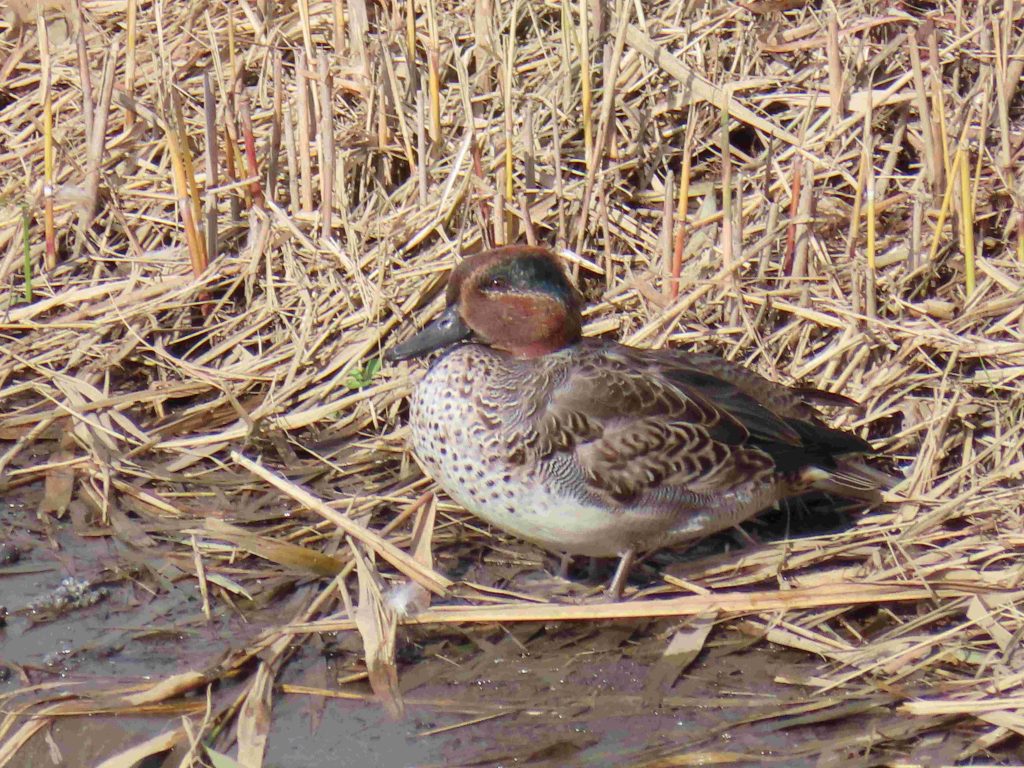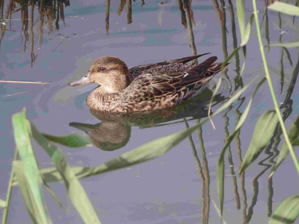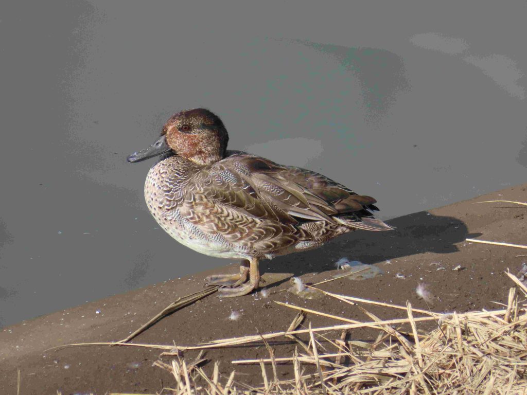 朝焼け(写真1)。不鮮明だが、キセキレイ(写真2、3)、カワラヒワ(写真4、5)の群れ、コガモの雄(写真6)、雄のエクリプス(写真7)、雌(写真8)、ハシビロガモの雌(写真9~12)をカメラに収めました。我が家の庭の片隅で、ホトトギス(写真13)がひっそりと咲いています。