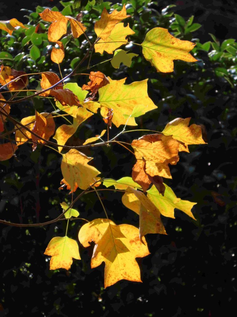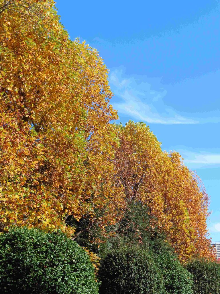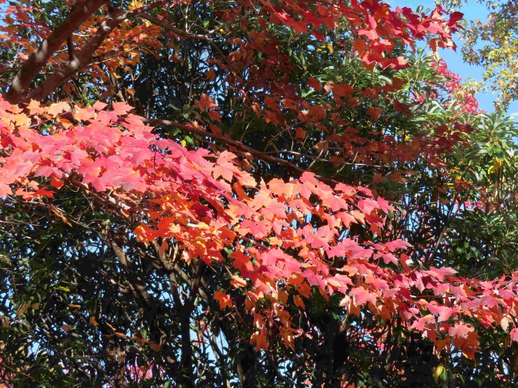 野鳥観察だけでなく、紅葉狩りも、と撮影助手(女房)に言われて、近くの公園へ。終わりかけているがカツラ(写真1)、ユリノキ(写真2~4)、イチョウ(写真5、6)の黄葉、ドウダンツツジ(写真7)、ニシキギ(写真8、9)、イロハモミジ(写真10~12)、ハナノキ(写真13、14)、モミジバフウ(写真15~17、17は撮影助手がスマホで撮影)の紅葉を堪能することができました。