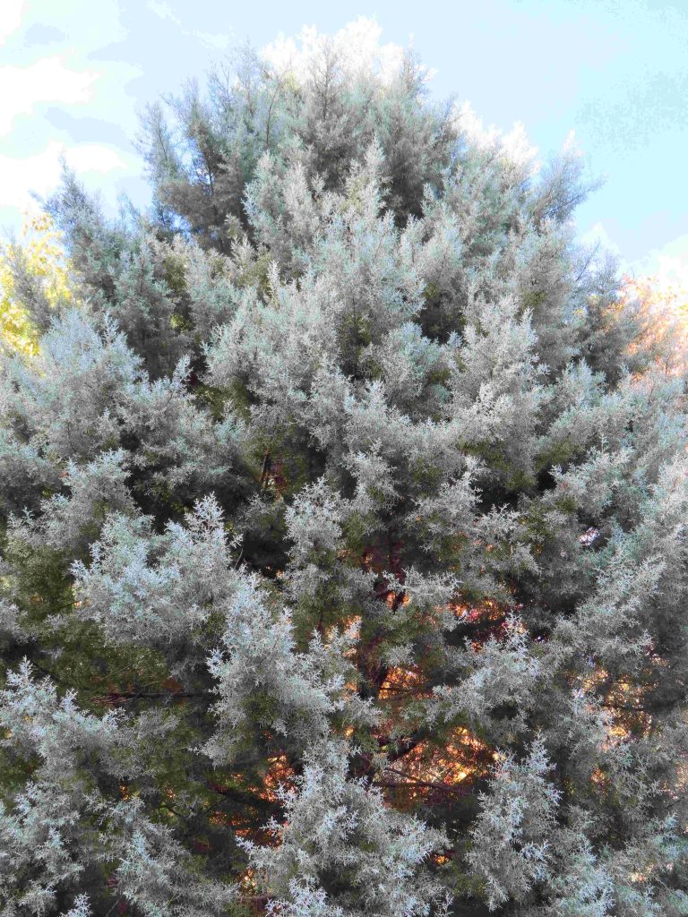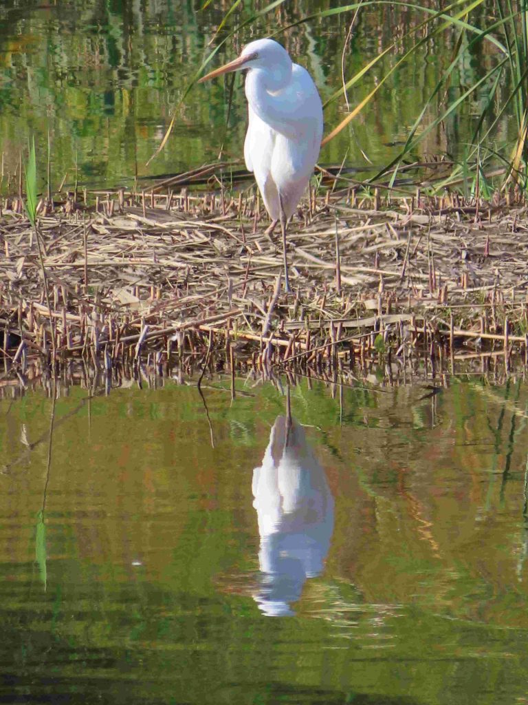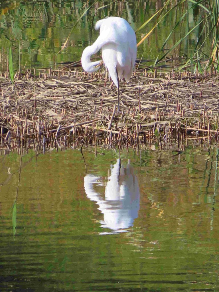 羽繕いするダイサギ(写真1、2)、ヒドリガモの雌(写真3)、アリゾナイトスギ(写真4)をカメラに収めました。キク(写真5)が咲いています。