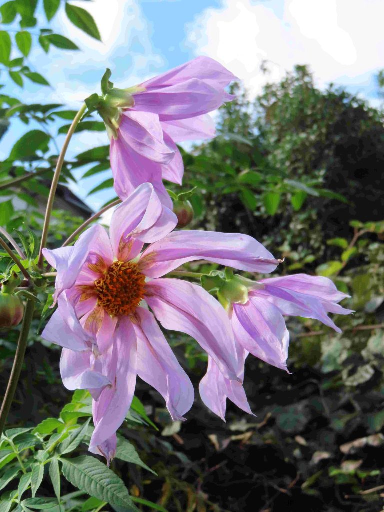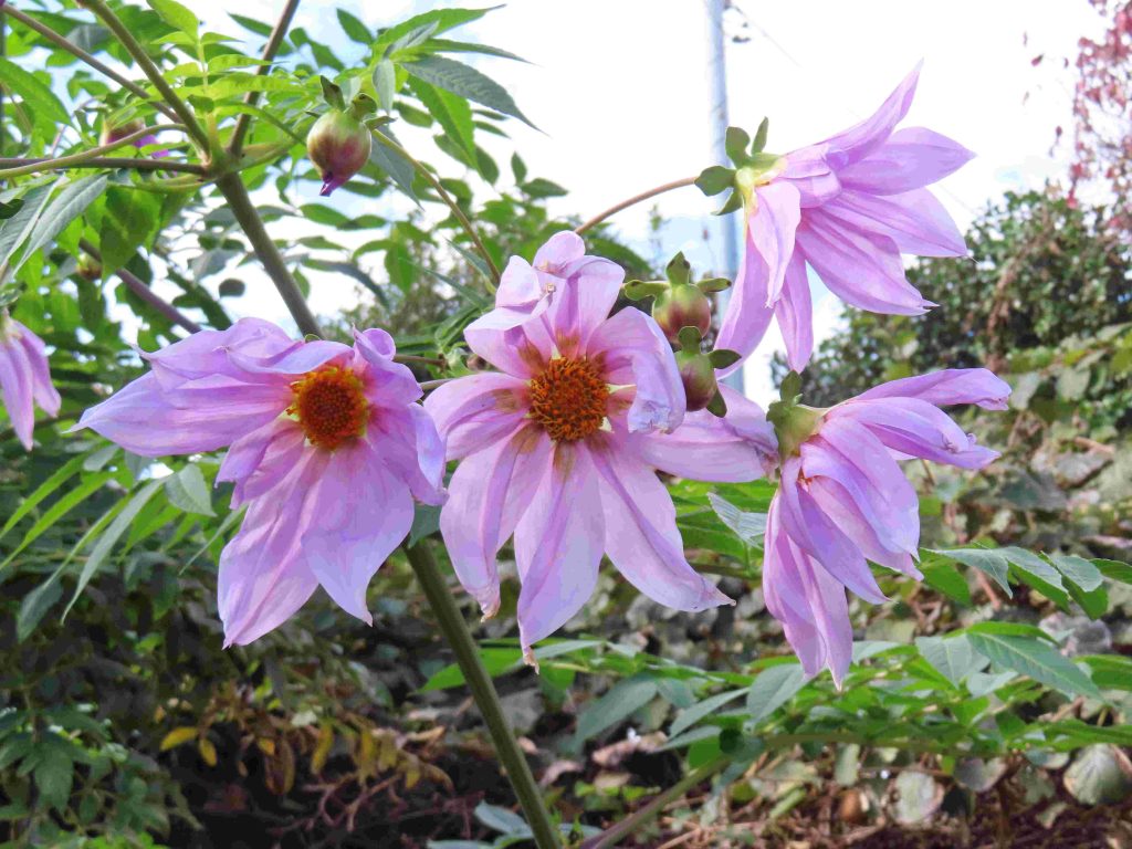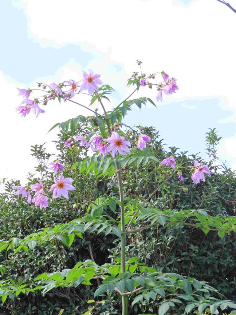 ハシビロガモの雄(写真1、2)、アオサギとダイサギとコサギ(写真3)、アオサギ(写真4)、ダイサギ(写真5)、コサギ(写真6)をカメラに収めました。ホトトギス(写真7)、キダチダリア(別添:コウテイダリア。写真8~11)が咲いています。