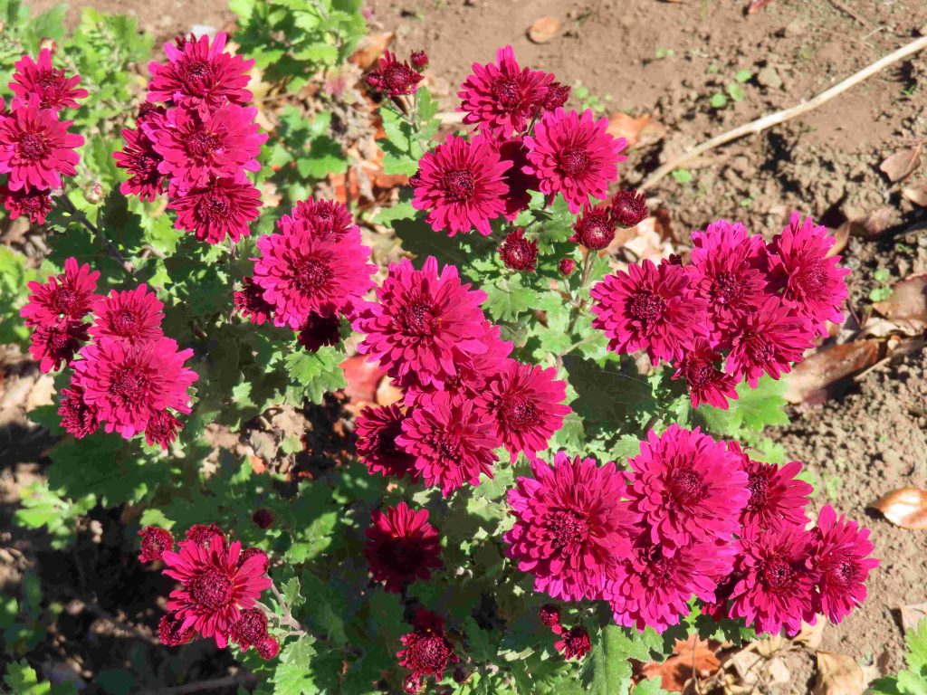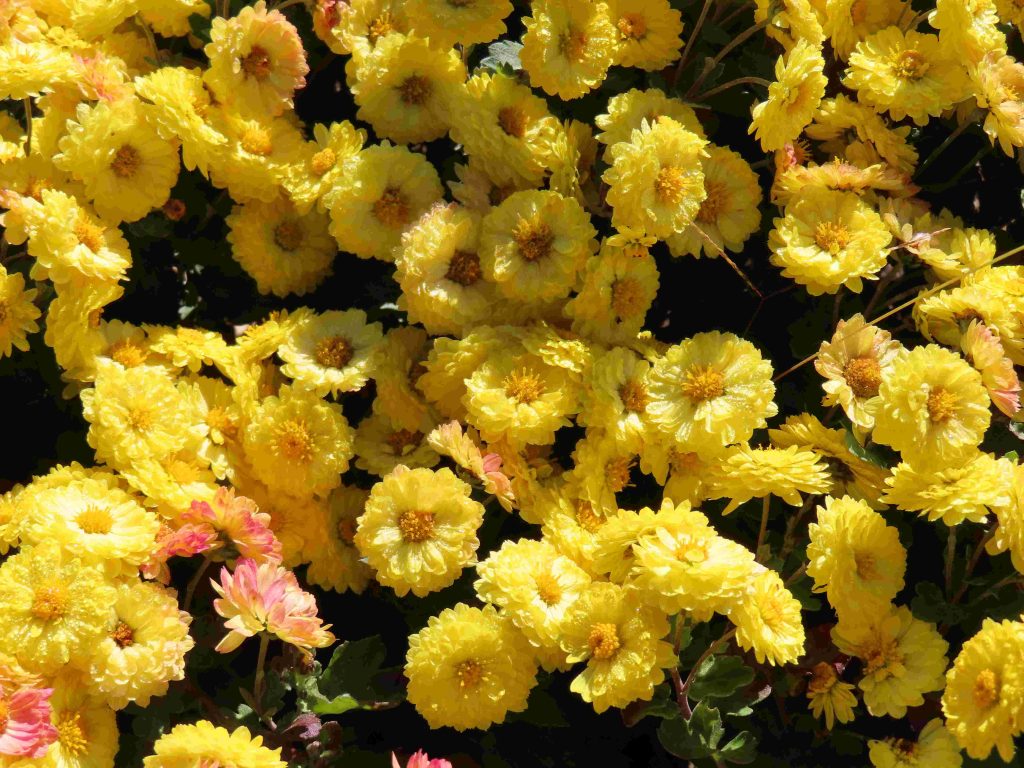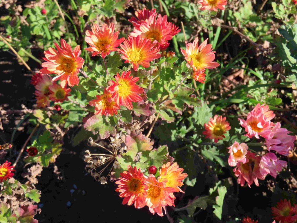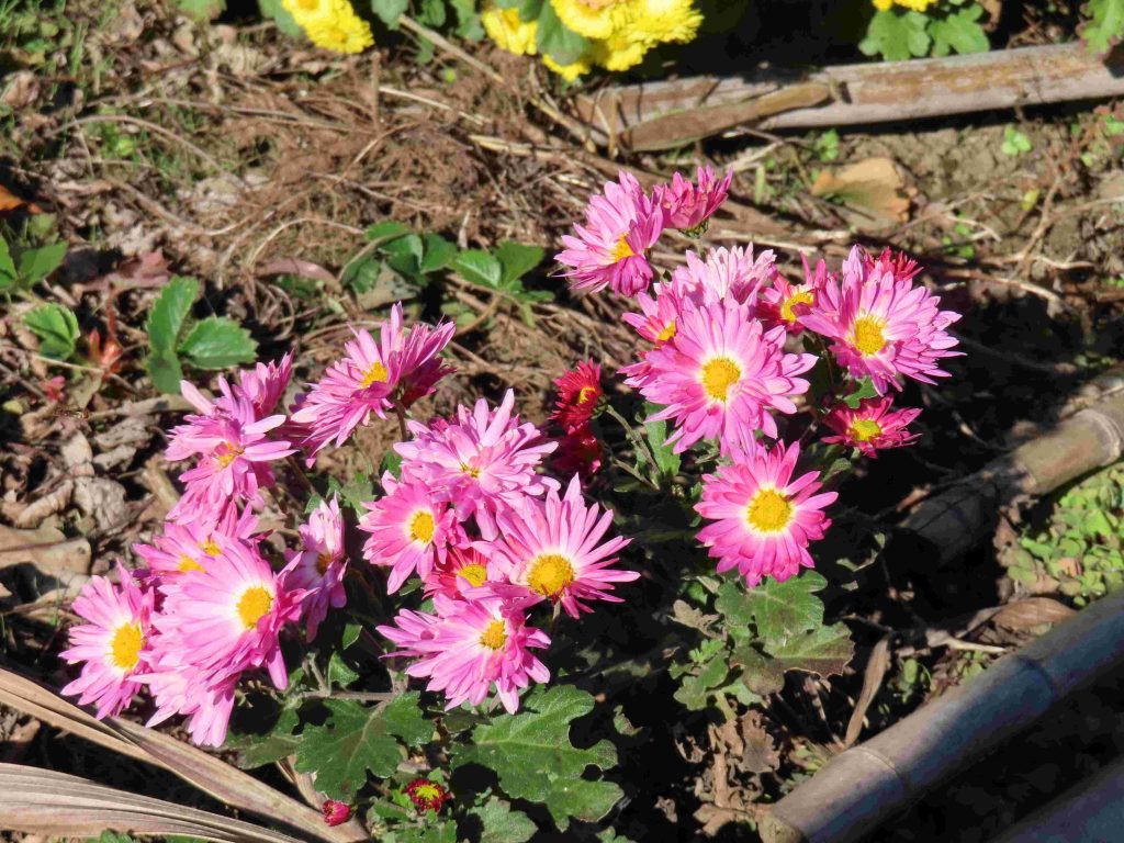 さまざまな色合いのキクが咲いています。