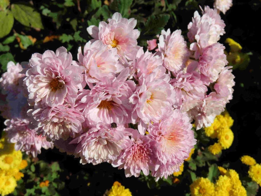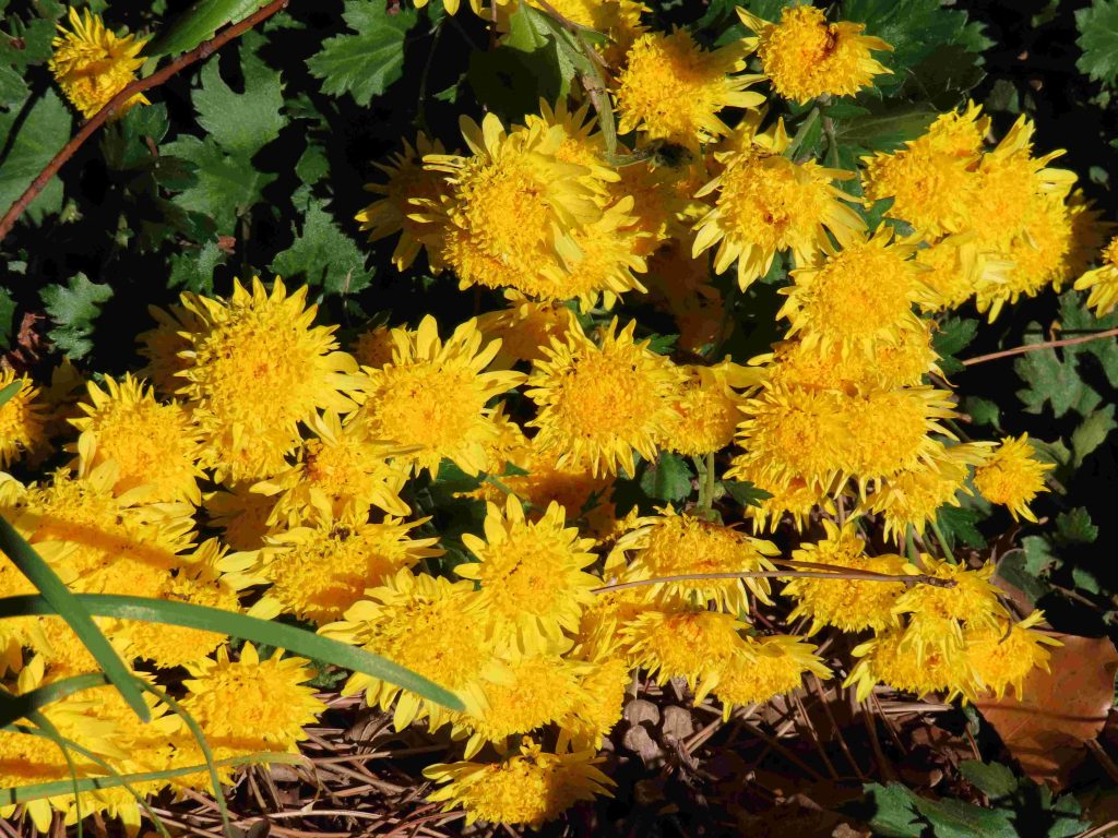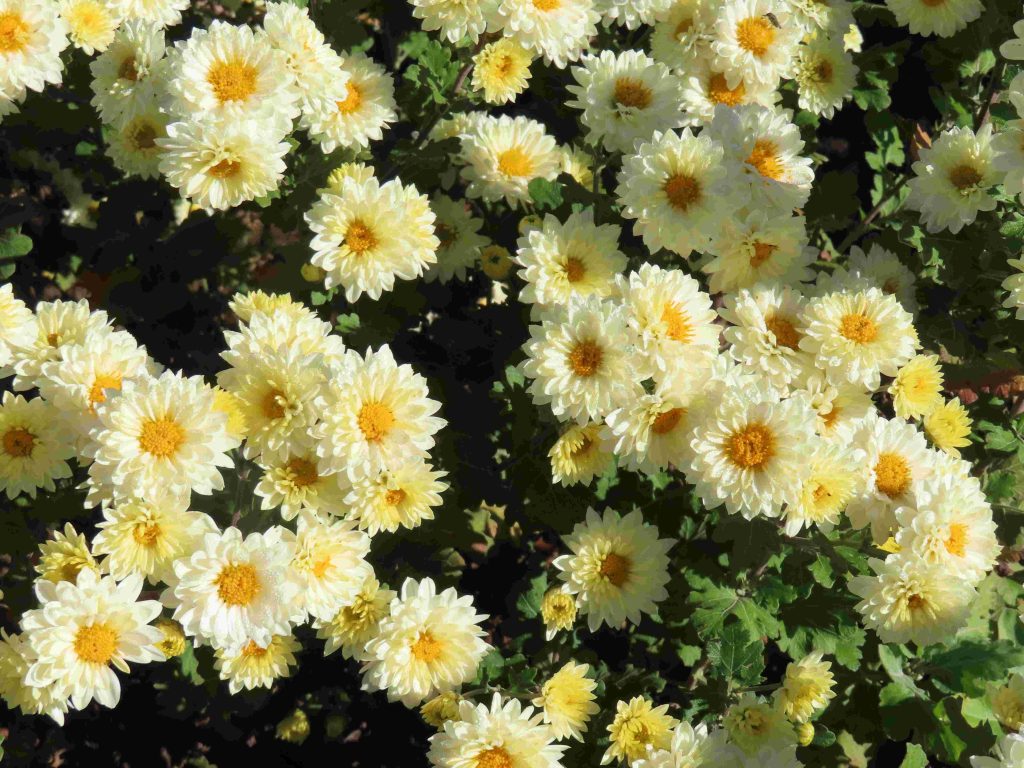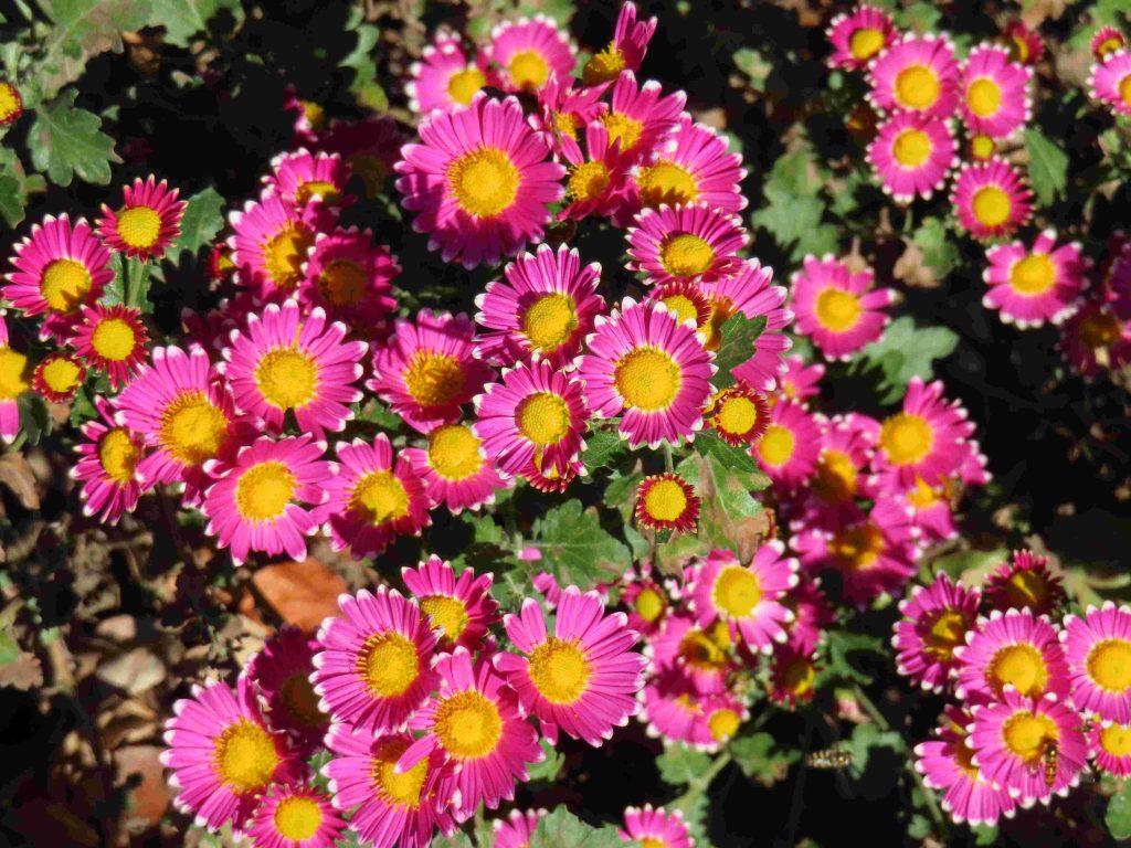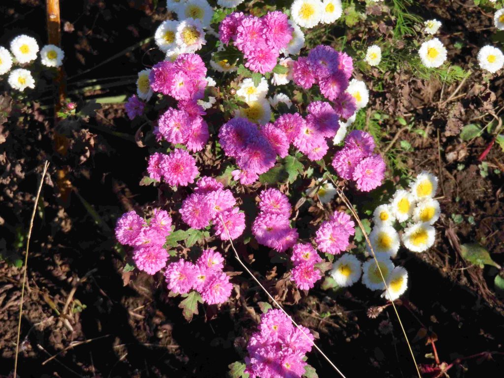 さまざまな色合いのキクが咲いています。