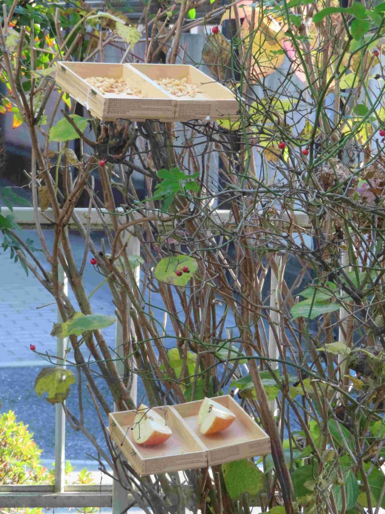 ツグミ(写真1)をカメラに収めました。イロハモミジ(写真2、3)が黄葉しています。ナンテン(写真4)が実を付けています。ソメイヨシノの樹脂が陽に輝いています(写真5)。散歩中のウィペット(写真8、9)に出会いました。帰宅した途端、撮影助手(女房)から、ツゲとモクレンの間を10羽ぐらいのメジロが飛び交っていたわよ、シジュウカラ(写真11。撮影助手が撮影)も来たわよ、今年は餌台を作らないの?と言われ、早速、餌台を作製し設置しました(写真12)。例年どおりであれば、彼らが新しい餌台は安全だと確認し終える3日後ぐらいから、どんどんやって来ることでしょう。因みに、本日の歩数は8,135でした。
