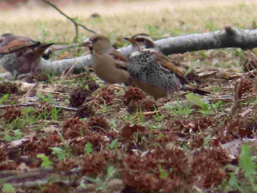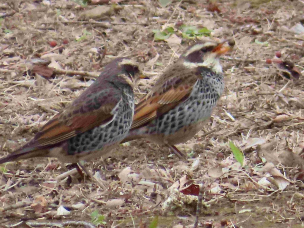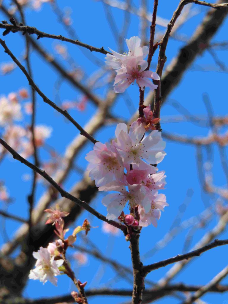 不鮮明だが、アオジの雄(写真1)、雌(写真2~4)、カワラヒワ(写真5)、シメ(写真6)、シメとツグミ(写真7)、ツグミ(写真8~12)をカメラに収めました。ジュウガツザクラ(写真13、14)が咲いています。因みに、本日の歩数は7.017でした。