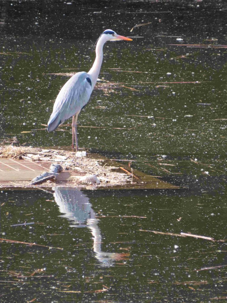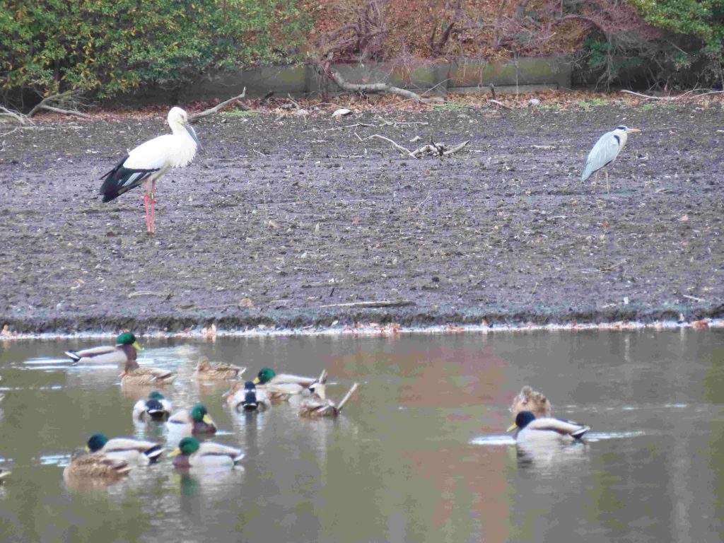 久しぶりにコウノトリ(写真1~6)に出会うことができました。アオサギ(写真2、4、7)、マガモの雄と雌(写真2、3)、コサギ(写真8)、ヒヨドリ(写真9)、シルエットと後ろ姿だがアカゲラ(写真10、11)、枝被りだがエナガ(写真12)をカメラに収めました。因みに、本日の歩数は14,654でした。