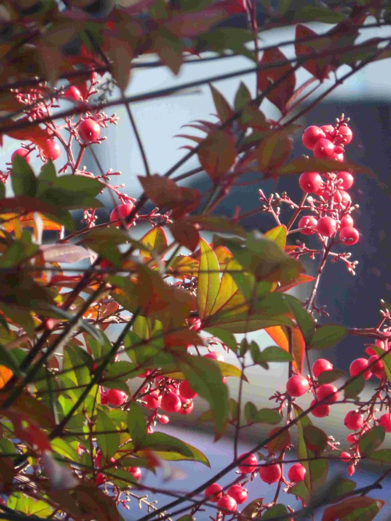 我が家のナンテンが実を付けています。