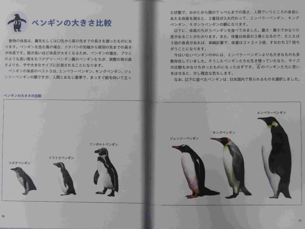 コガタペンギン<イワトビペンギン<フンボルトペンギン<ジェンツーペンギン<キングペンギン<エンペラーペンギン
