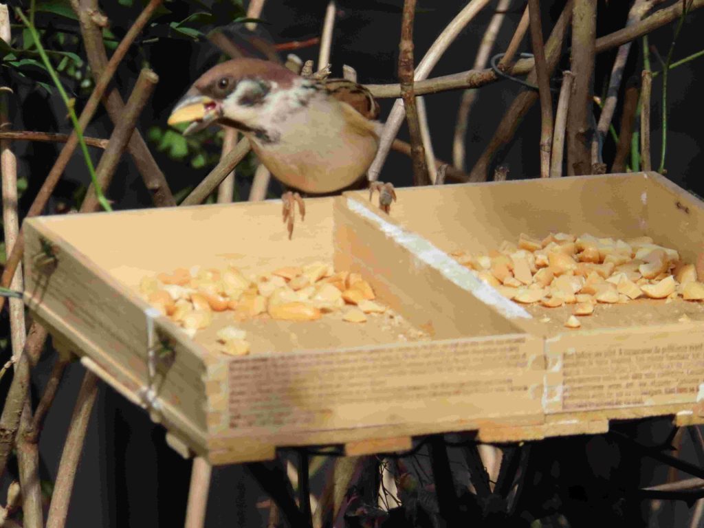 朝から夕まで、我が家の餌台は、スズメ(写真1~3)、シジュウカラ(写真4~7)、メジロ(写真8~11)たちで大賑わい。