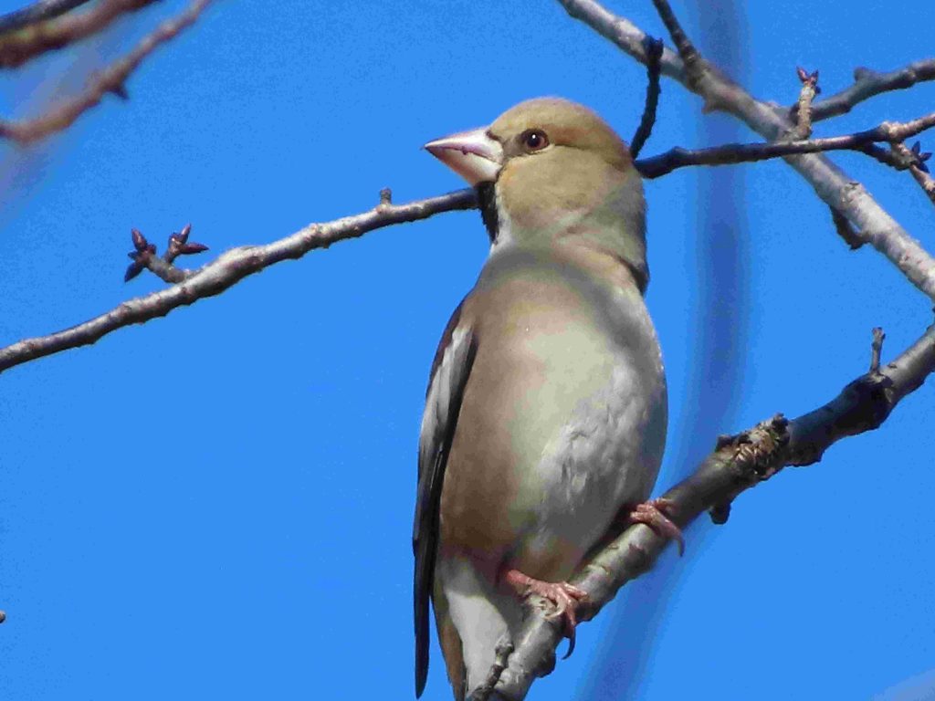 ヒバリ(写真1、2)、タヒバリ(写真3)、ツグミ(写真4,5)、シロハラの雄(写真6、7)、アオジの雌(写真8)、カワセミの雄(写真9~11)、シメ(写真12、13)をカメラに収めました。因みに、本日の歩数は15,363でした。
