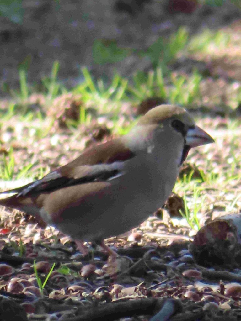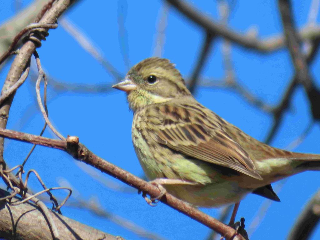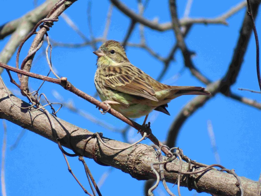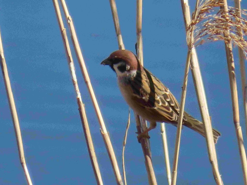 アオジの雌(写真1~3)、スズメ(写真4)、シメ(写真5~8)、ツグミ(写真9)、カワウ(写真10)、アオサギ(写真11)をカメラに収めました。