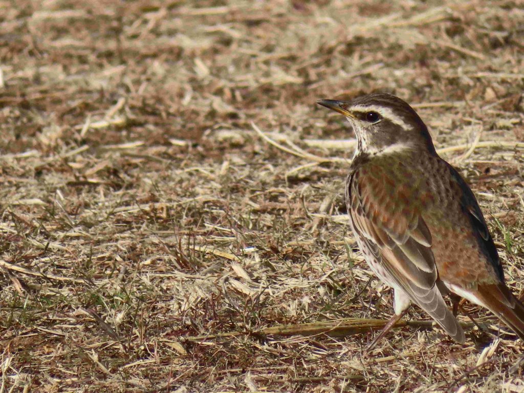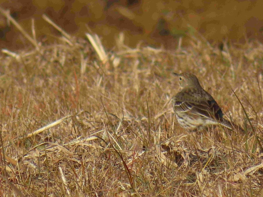 マヒワの雌(写真1)、ルリビタキの雌(写真2~5)、ハクセキレイ(写真6)、タヒバリ(写真7~12)、ヒバリ(写真13、14)、ツグミ(写真15)をカメラに収めました。因みに、本日の歩数は10,459でした。