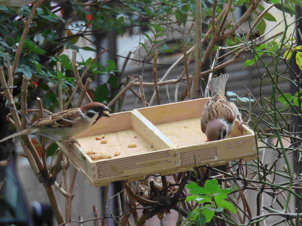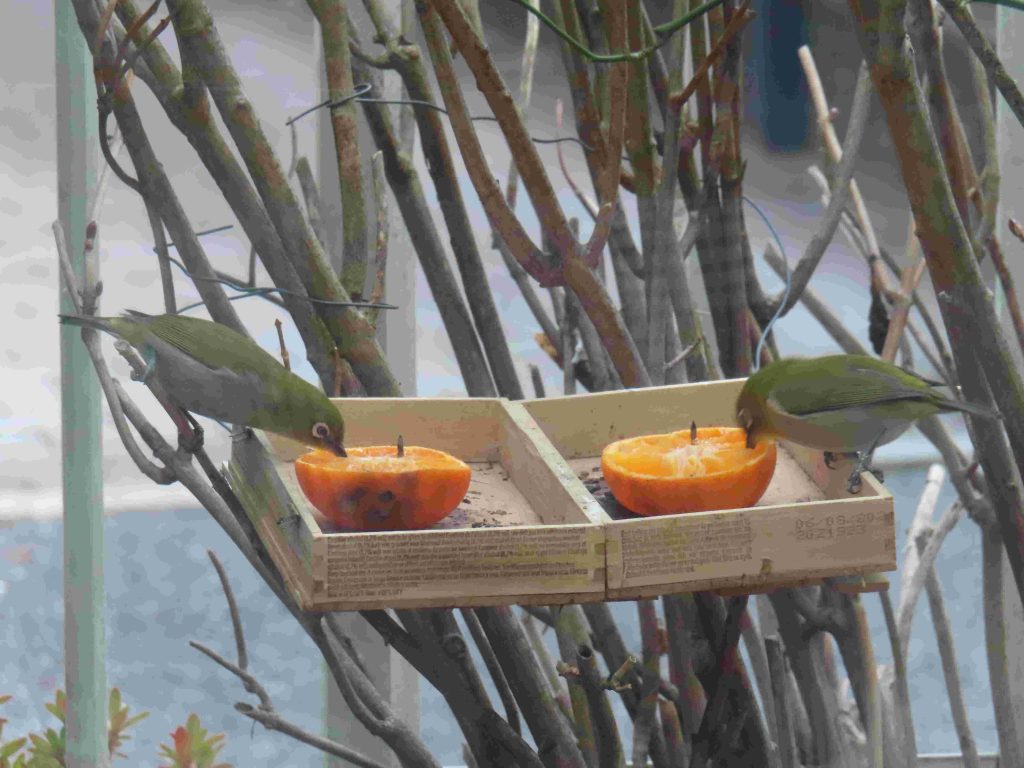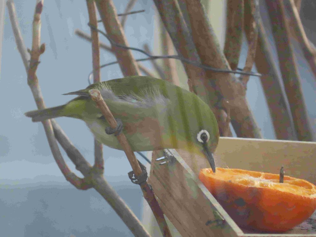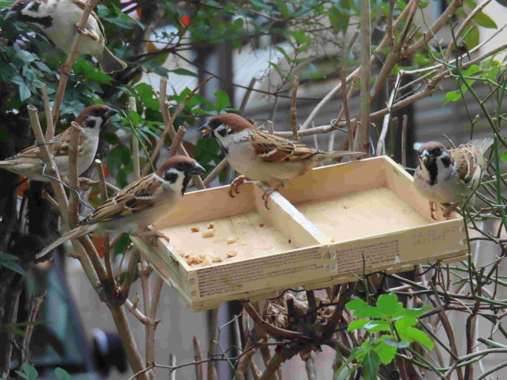 我が家の餌台の常連のシジュウカラ、スズメ、メジロたち。