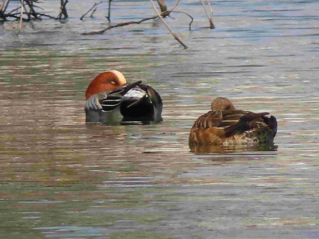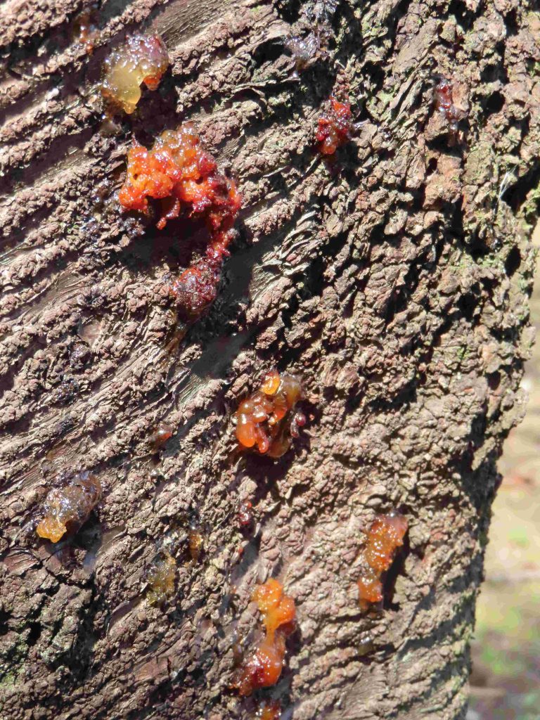 ヒドリガモの雄と雌(写真1)、雌(写真2)、コイ(写真3)をカメラに収めました。オオイヌノフグリ(写真4)、アセビ(写真5)が咲いています。ノシラン(写真6)が実を付けています。ストレスを被った樹木が樹脂を出しています(写真7)。