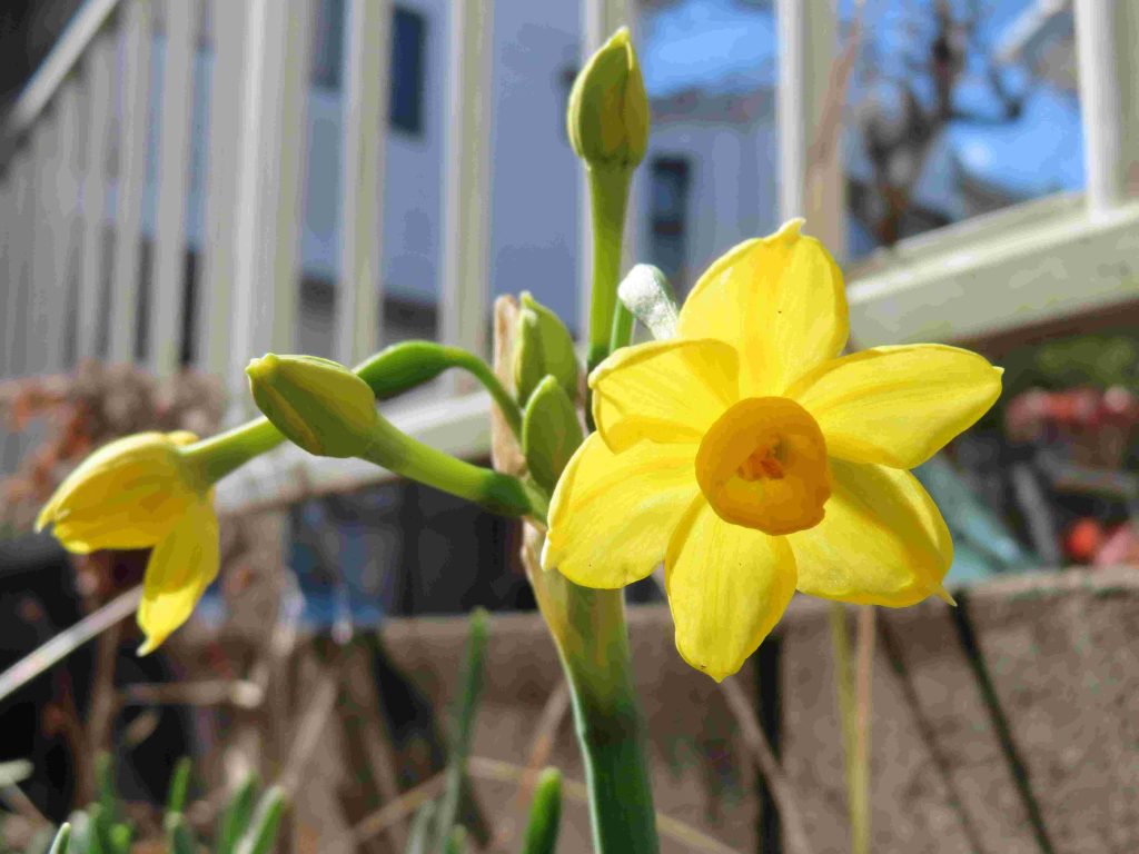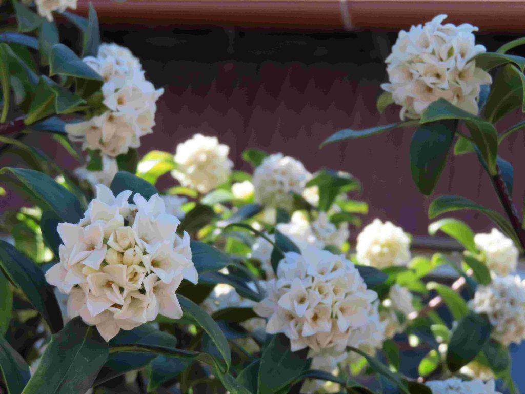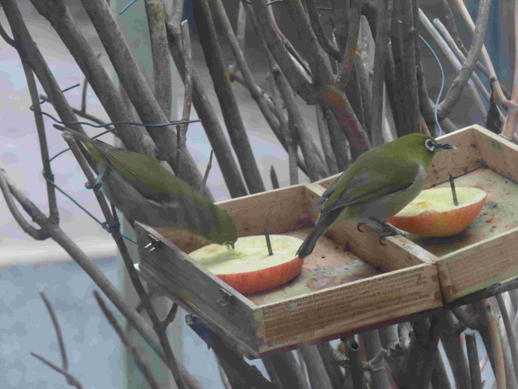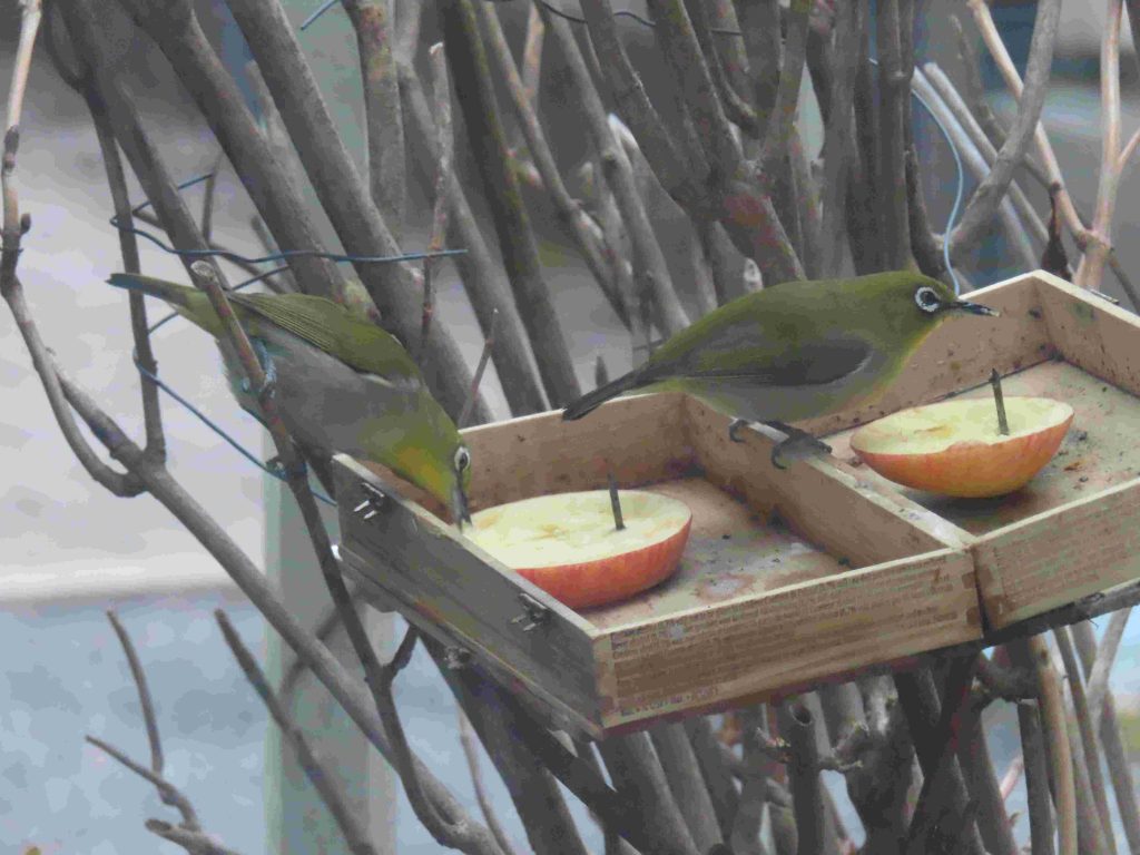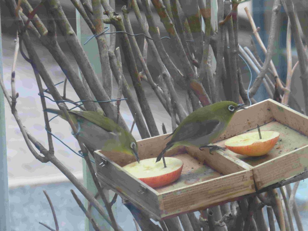 シロバナジンチョウゲ(写真1、2)が芳香を放っています。餌台にやって来るメジロ(写真3~7)たちを眺めていると、時間が経つのを忘れてしまいます。我が家の庭師(女房)から、キズイセン(写真8)が咲き出したわよ、との報告あり。
