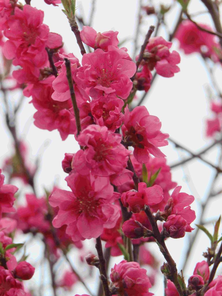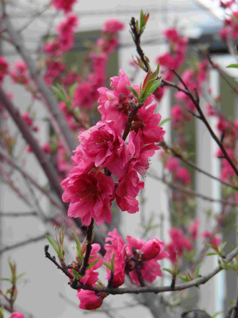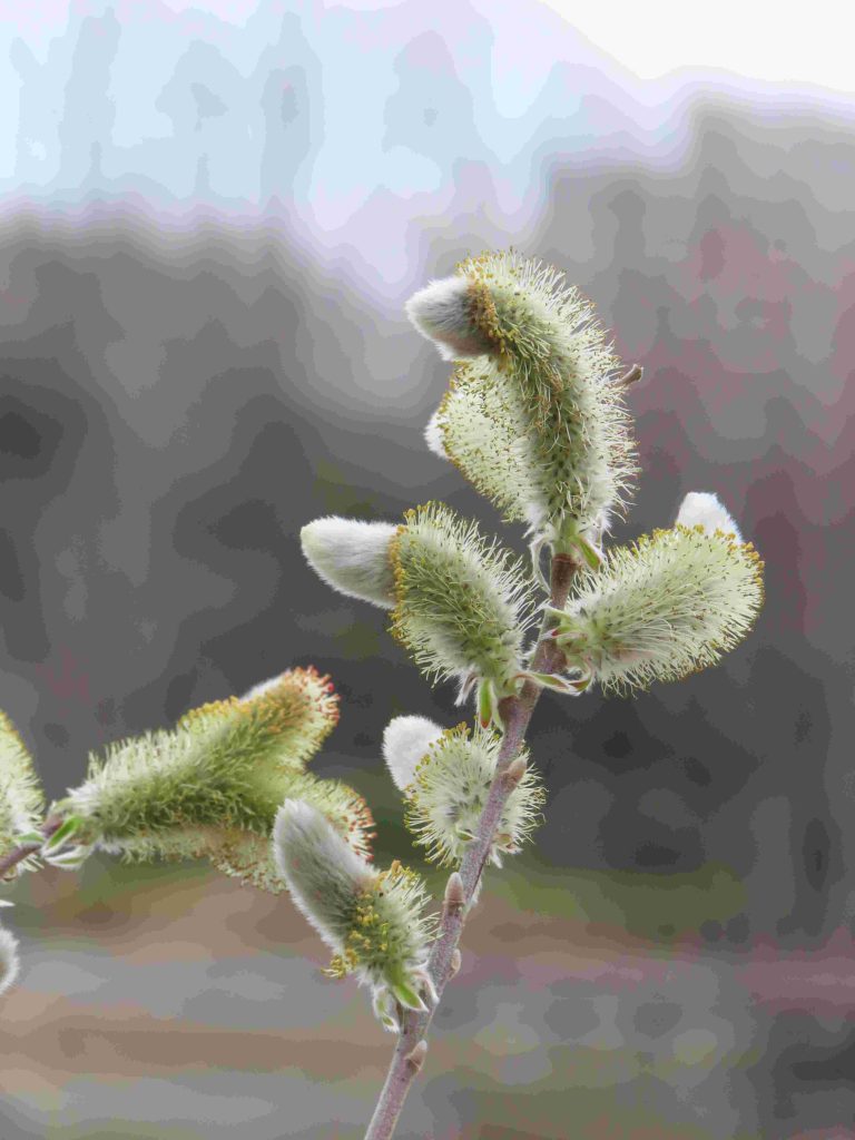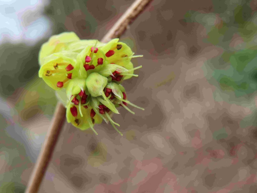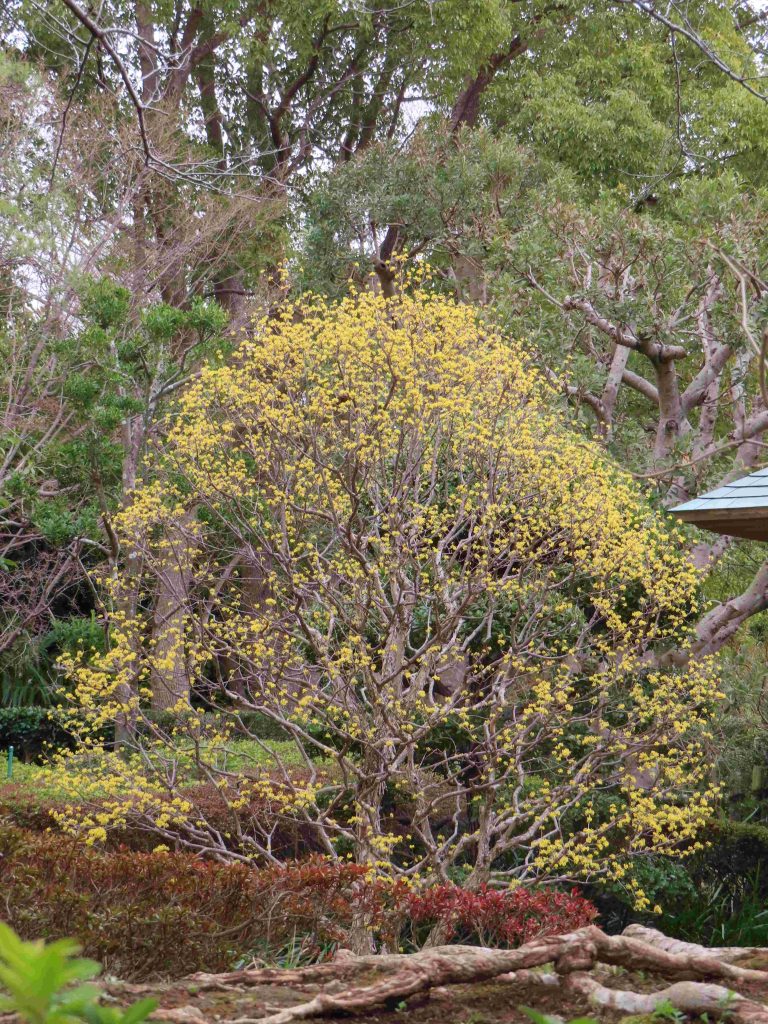サンシュユ(写真1~4)、ハナモモ(写真5~8)、ネコヤナギの雄花(写真9、10)、トサミズキ(写真11、12)が咲いています。ヒュウガミズキ(写真13)は開花寸前です。