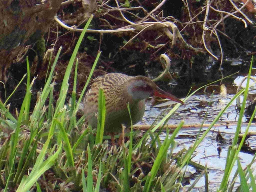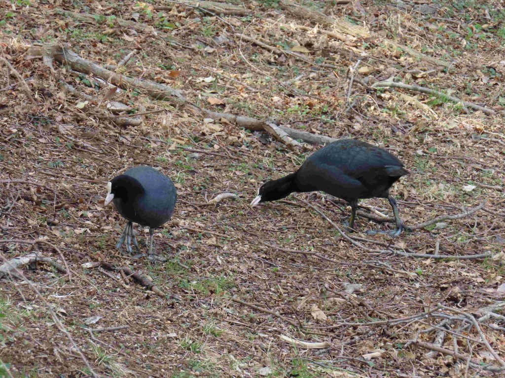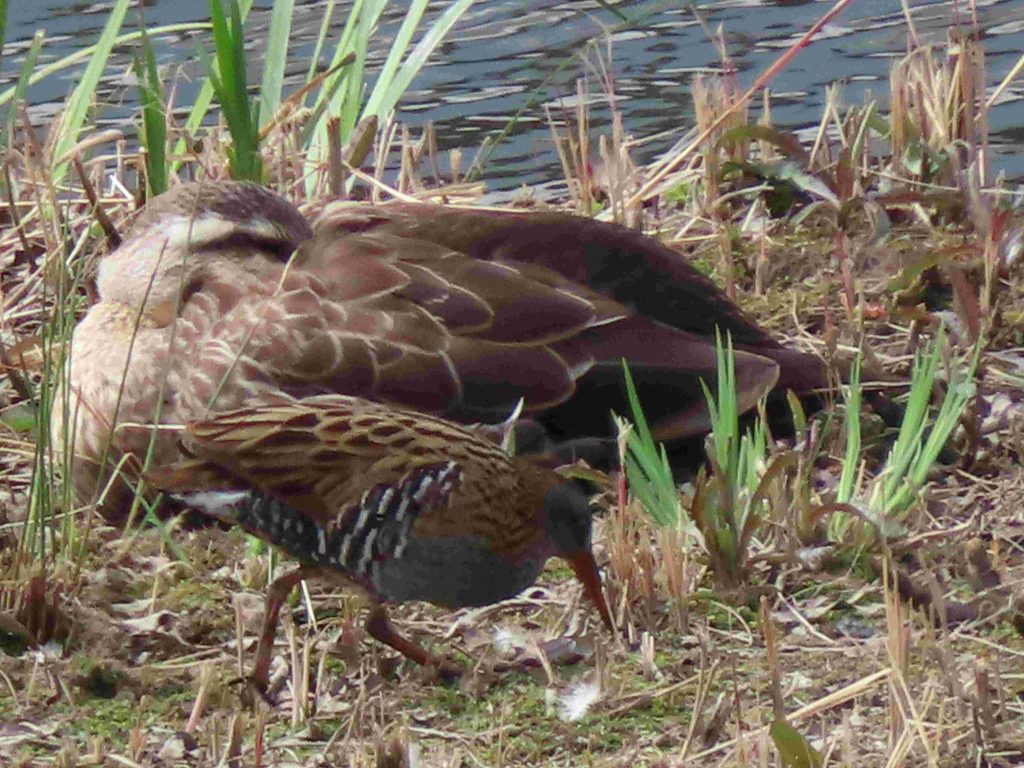久しぶりにトモエガモの雄(写真1~4)に出会うことができました。運よく、クイナ(写真5~11)をじっくり観察することができました。クイナとカルガモの体の大きさのこの差!(写真5)。バン(写真12~15)、オオバン(写真16,17)をカメラに収めました。